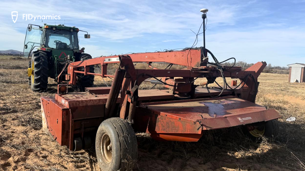 Our field test focused specifically on simulating and correcting implement sway during straight-line operation—a critical scenario for tasks like mowing, planting, and tillage across large Oklahoma fields. With the John Deere 8300 locked onto the straight guidance line using the FJD AT2 autosteering, we deliberately introduced conditions that would cause the Hesston 1360 Moco to sway and drift.